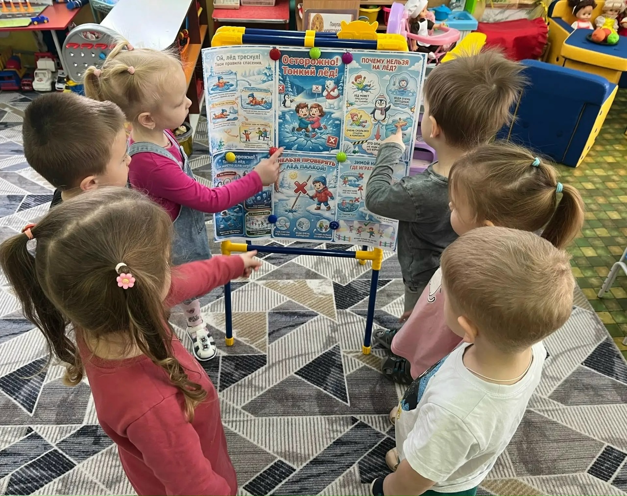 В целях обеспечения жизни и здоровья воспитанников, в рамках акции «Безопасность детства2026» в нашем детском саду с воспитанниками были проведены профилактические мероприятия - «Осторожно, тонкий лед». Ребята активно отвечали на вопросы воспитателей и повторили правила безопасного поведения на водоемах в зимнее время просмотрев познавательный мультфильм «Смешарики».